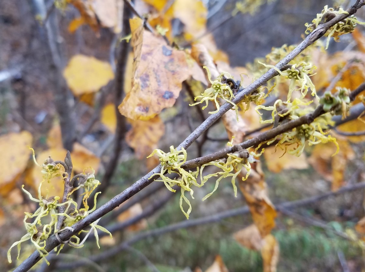 09_20181112_110612 (2) Published November 15, 2018 at 3020 × 2253 in November 12-18, 2018 (Week 46 of 52): Our Landscape has been Transformed Following Leaf-Drop ← Previous Next → Witch-hazel flowers