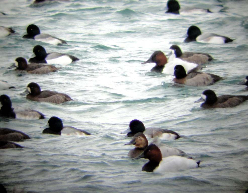 4_DSC00631 Published December 5, 2018 at 986 × 768 in December 3-9, 2018 (Week 49 of 52): Tremendous Numbers of Ducks Overwinter on the Great Lakes and Niagara River ← Previous Next → Large raft of diving ducks, mostly canvasback and scaup (photo by Jacquie Walters, NYSDEC)