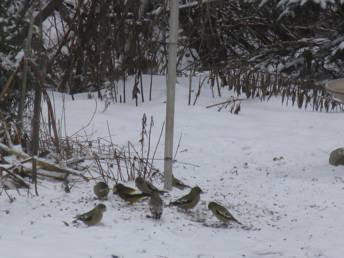 11_Evening Grosbeaks_John Rosenburg Published December 22, 2018 at 4096 × 3072 in December 17-23, 2018 (Week 51 of 52): Niagara Falls is the Gull Capital of the World ← Previous Evening grosbeaks, December 2018 (photo by John Rosenburg)