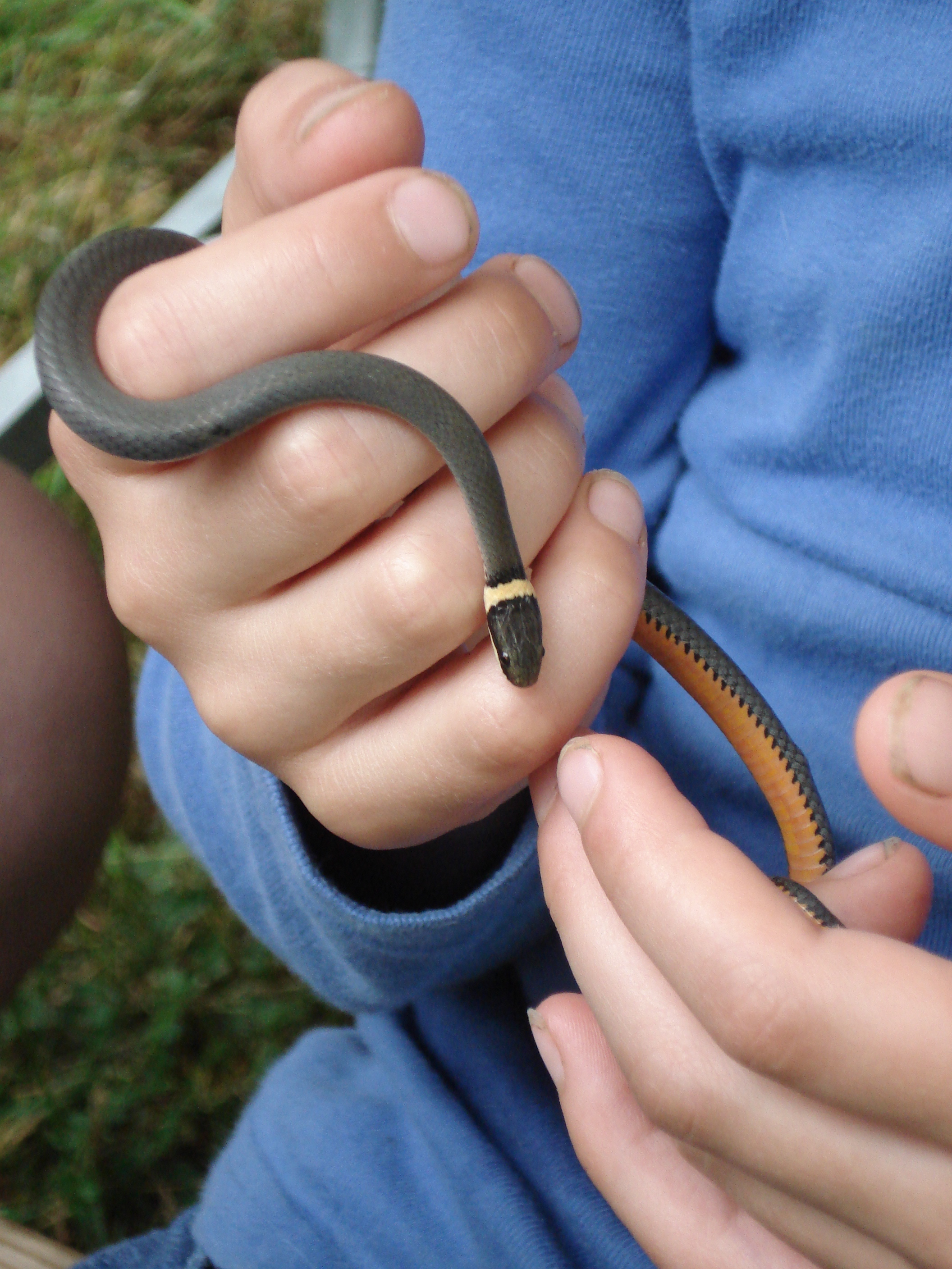 14_Herps_Ring Necked Snake_Bonnie Bowen Published February 7, 2019 at 2112 × 2816 in February 5-11, 2019 (Week 6 of 52): Cold-Blooded Critters Just Chill for Winter ← Previous Next → Ring-necked snakes “hibernate” in animal burrows, stumps, rock crevices, etc. (photo by Bonnie Bowen)