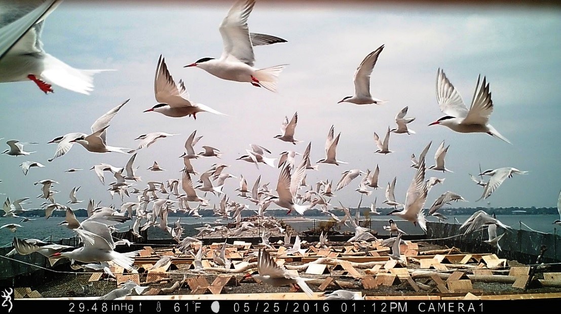 19_terns in air Published May 18, 2019 at 1107 × 620 in May 14-20, 2019 (Week 20 of 52): Rapid Transformation to a Vibrant Green Landscape ← Previous Next → Common tern colony (NYSDEC trail cam photo)