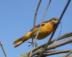 27_Baltimore Oriole with Nest Material_Dave Denk Published May 18, 2019 at 1356 × 1063 in May 14-20, 2019 (Week 20 of 52): Rapid Transformation to a Vibrant Green Landscape ← Previous Next → Baltimore oriole carrying nest material (Photo by Dave Denk instagram = dddave226)