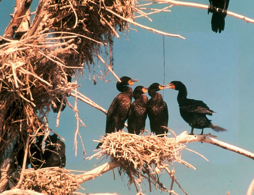 18A_Connies Corm Photo (2) Published May 24, 2019 at 886 × 680 in May 21-27, 2019 (Week 21 of 52): Shorebird Migration May Peak This Week ← Previous Next → Double-crested cormorants nesting (Photo by Connie Adams)