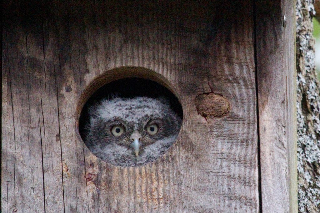 20A_IMG_1239_Jodi Wroblewski Published May 24, 2019 at 1024 × 682 in May 21-27, 2019 (Week 21 of 52): Shorebird Migration May Peak This Week ← Previous Next → Eastern screech owl about to fledge from Grand Island nest box (Photo by Jodi Wroblewski)