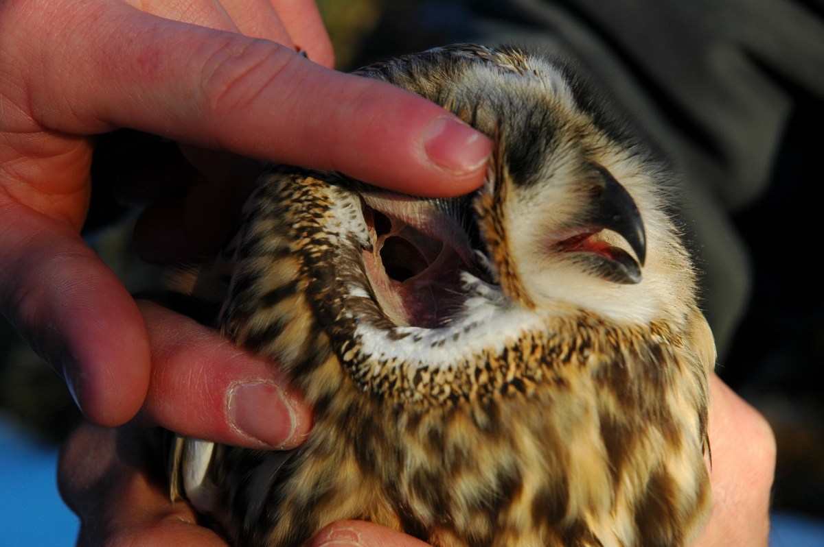 16_483 -2010-03-05_14 Published December 31, 2019 at 1600 × 1064 in January 1-7, 2019 (Week 1 of 52): Winter Raptor Watching is an Exciting Way to Start the New Year ← Previous Next → View of facial disk and large ear opening of short-eared owl, remarkable adaptations for catching prey by sound (photo by Tom Poczciwinski).